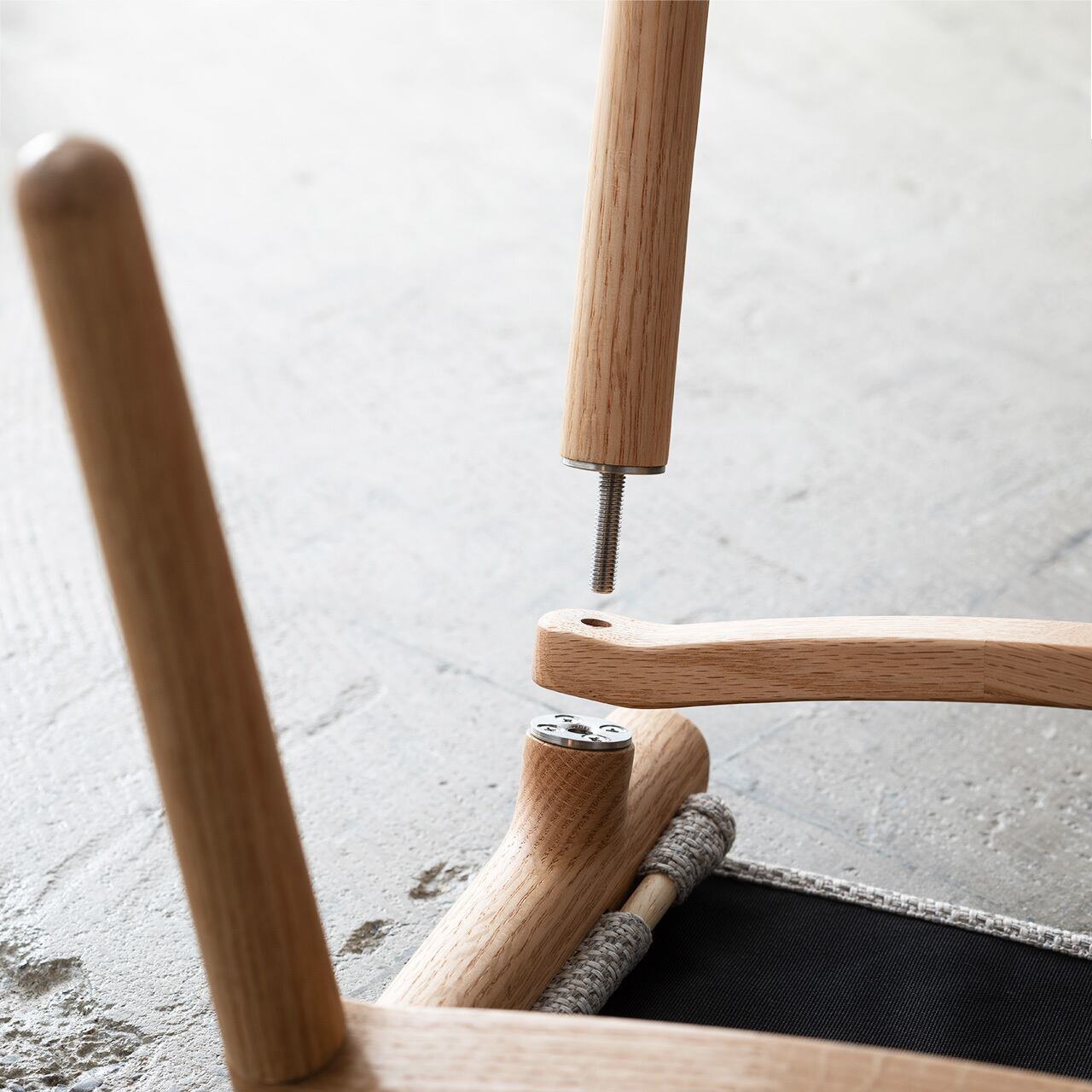 すべてのパーツはねじ込むことでつなげられ、工具を一切使わず簡単に組立・分解できます。分解した各パーツをコンパクトにまとめて持ち運べる、便利な専用布製収納ケースもご用意しました。座面の厚手のキャンバスシートはブラック・オリーブの2色からお選びいただけます。